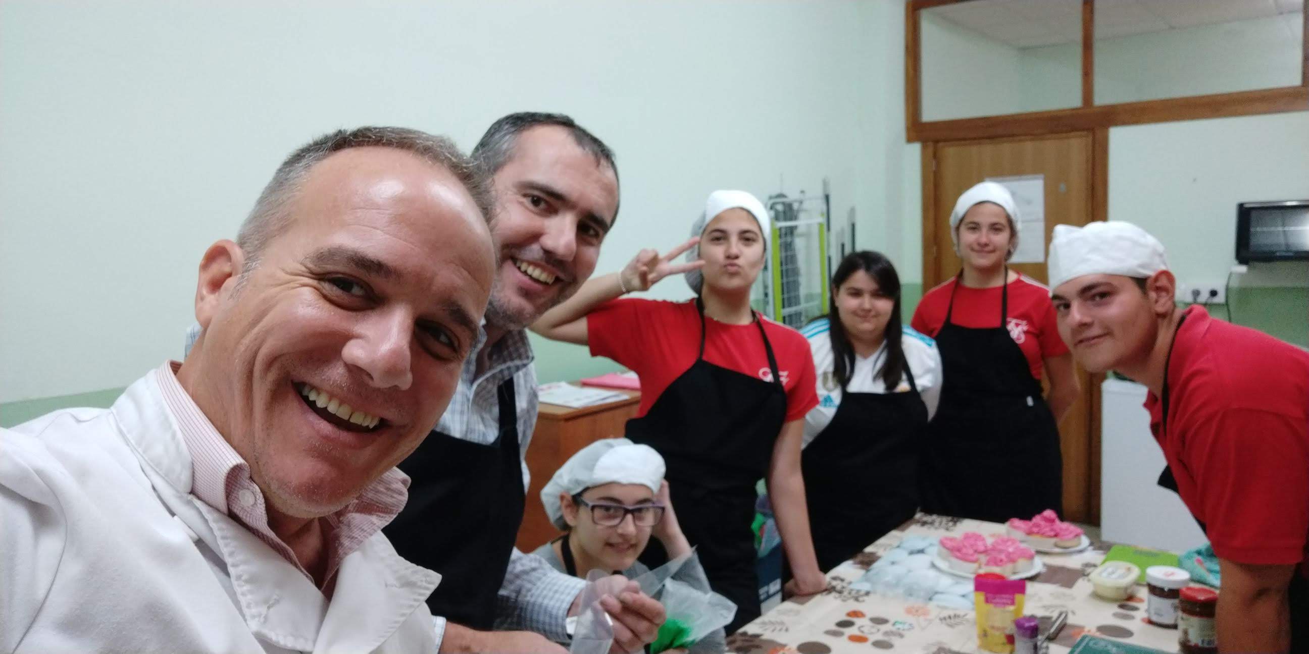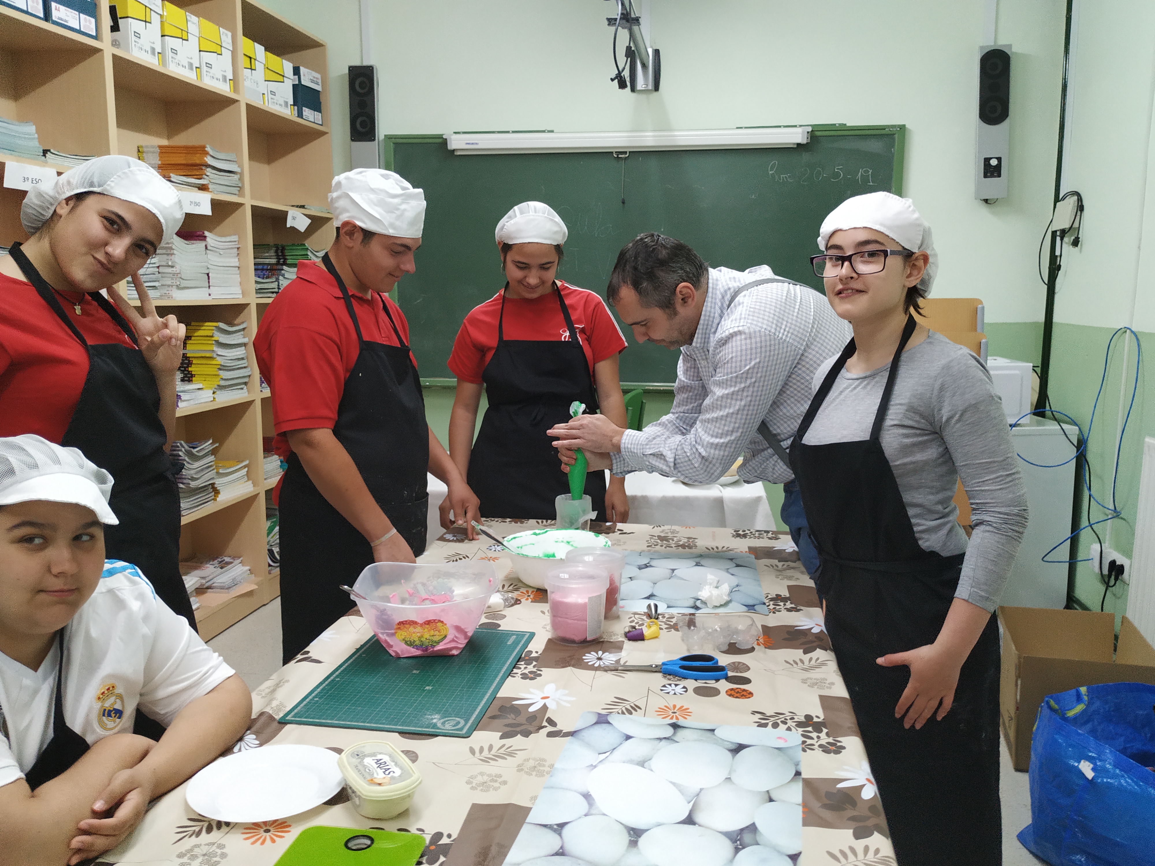 El pasado lunes, el alumnado de PTVAL, recibió la visita de Juan Luis Aguilera Carrillo, propietario del Taller de Repostería Mundo Dulce de Iznájar, que entre otras cosas se dedica a la elaboración de repostería para eventos de bodas, bautizos y comuniones.